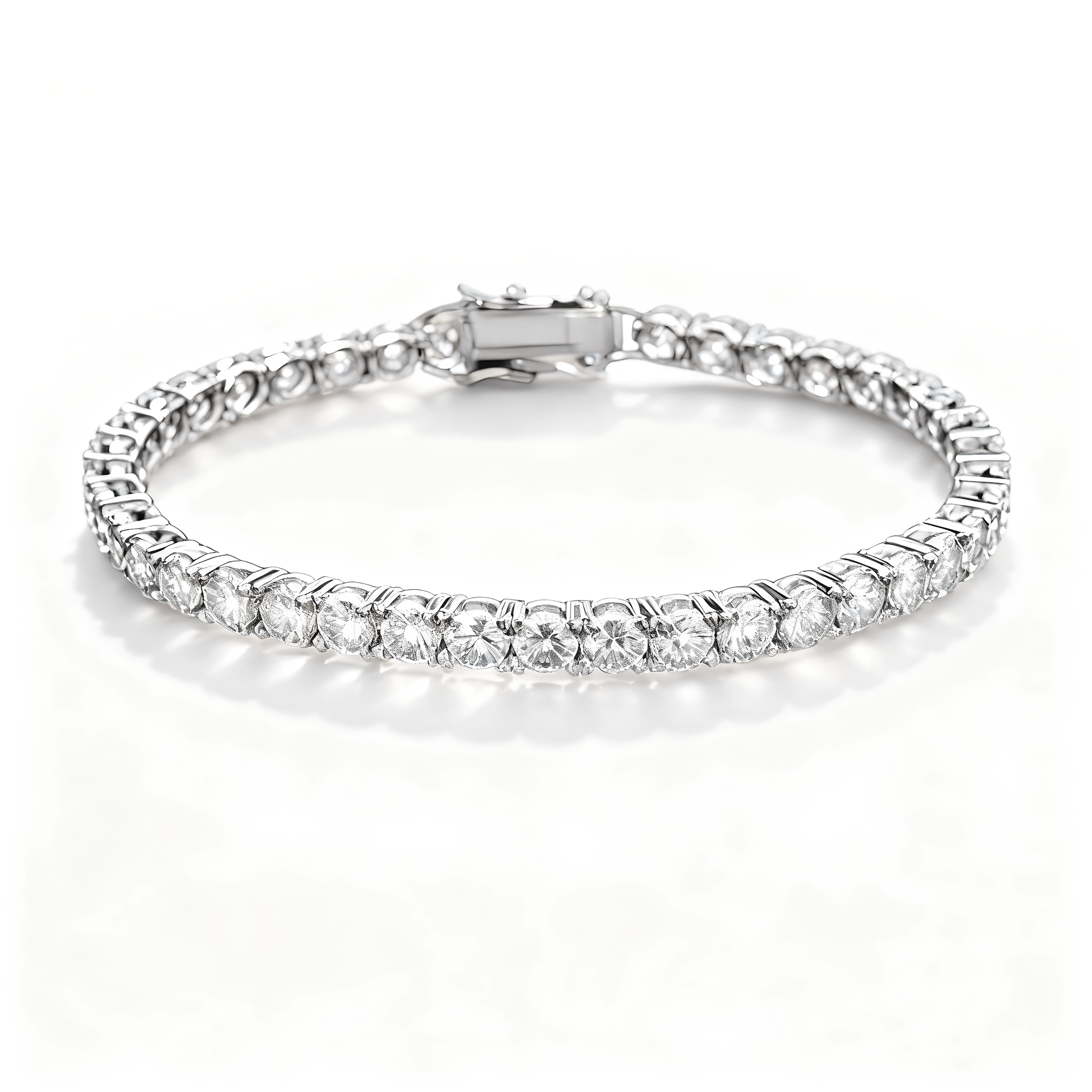 Introducing the Eternal Radiance Moissanite Tennis Bracelet - a masterpiece of timeless elegance and modern brilliance. Each bracelet features a continuous line of perfectly cut D - E colour moissanite stones, individually set to create an endless shimmer that captures the light - and every admiring glance.