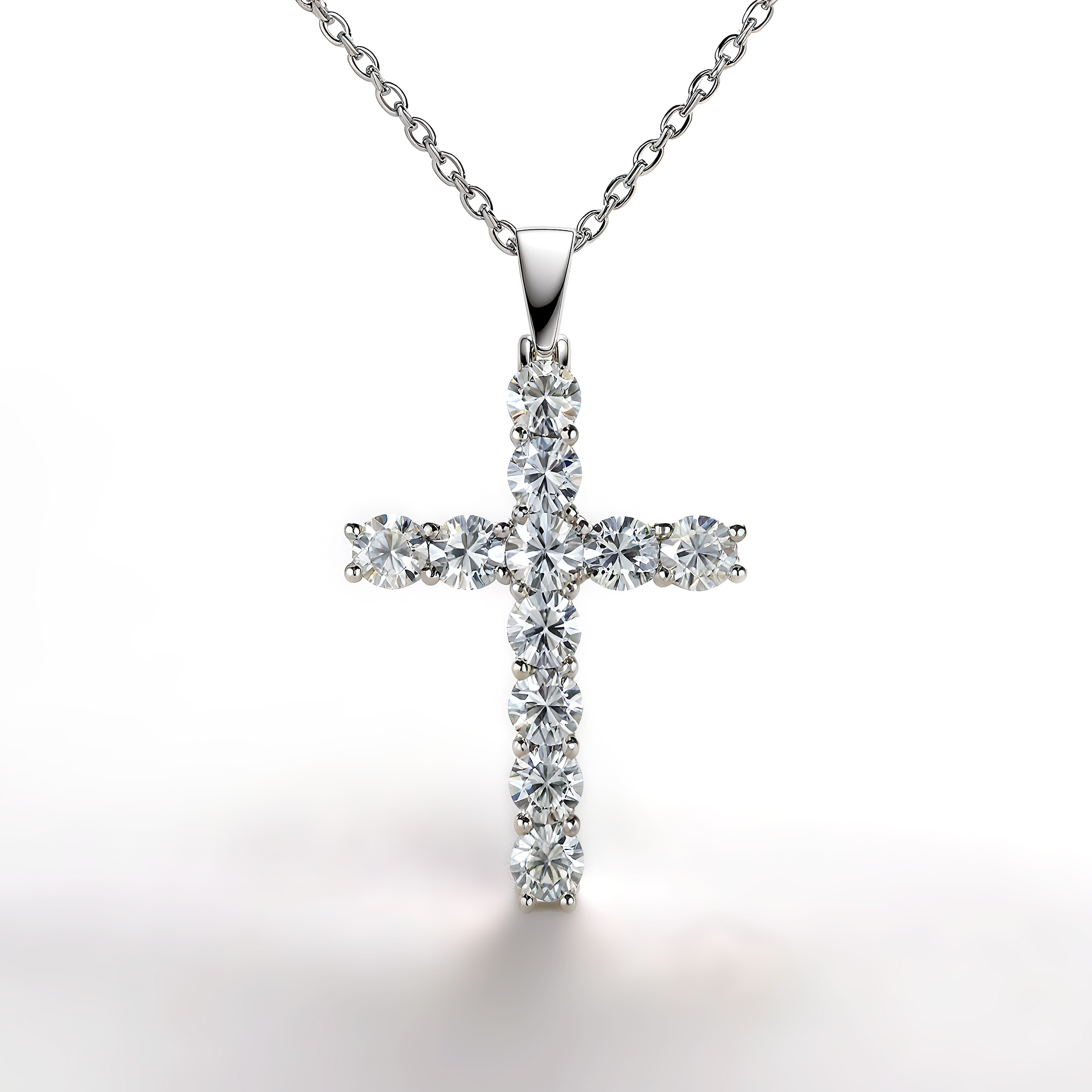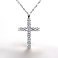 Grace in its purest form - the Celestial Faith Moissanite Cross Necklace embodies light, devotion, and timeless beauty. Each stone is a hand-cut D - E colour moissanite, chosen for its unrivalled brilliance and fire, reflecting the strength and serenity of unwavering faith.