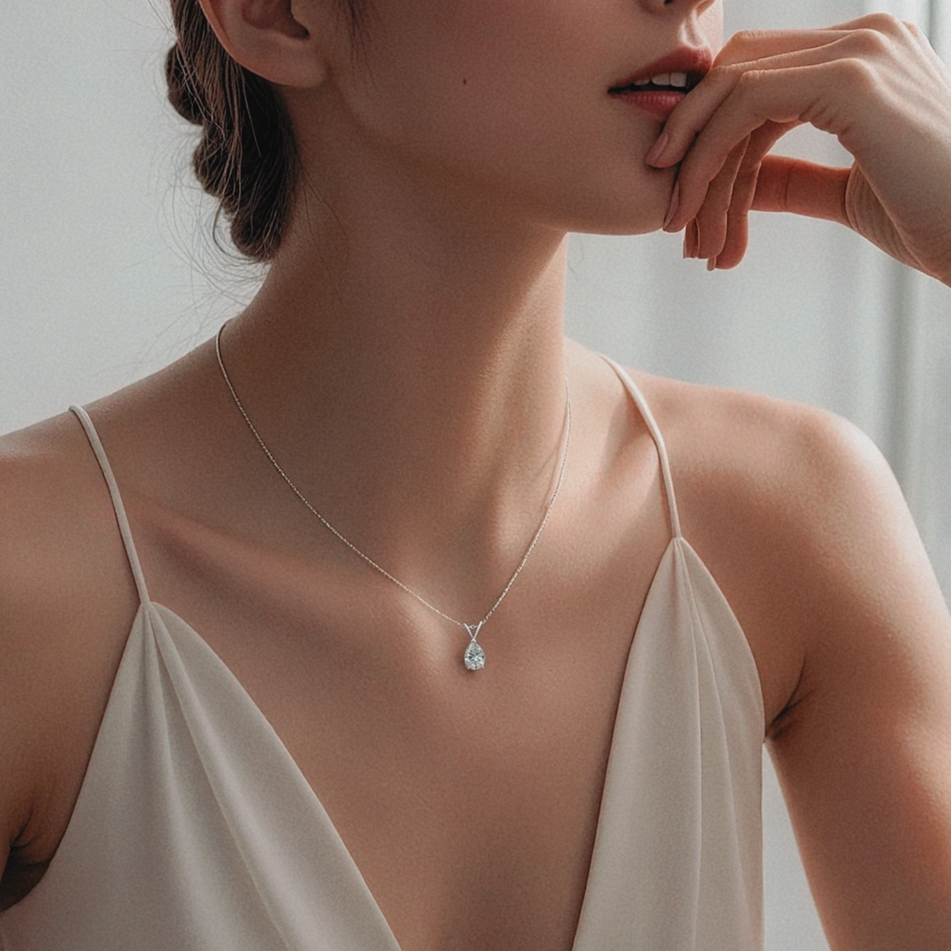 Delight in the brilliance of a 1.5 carat pear-shaped moissanite, renowned for its luminous sparkle and vintage-inspired elegance. This exquisite gemstone symbolizes deep emotional connections, making it an ideal choice for celebrating significant moments or as a meaningful gift. It embodies sophistication and timeless charm, radiating a sense of heartfelt sentiment.